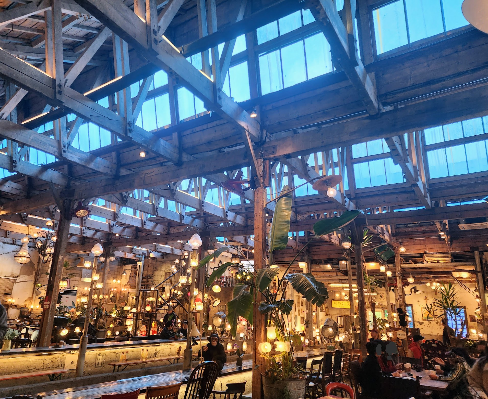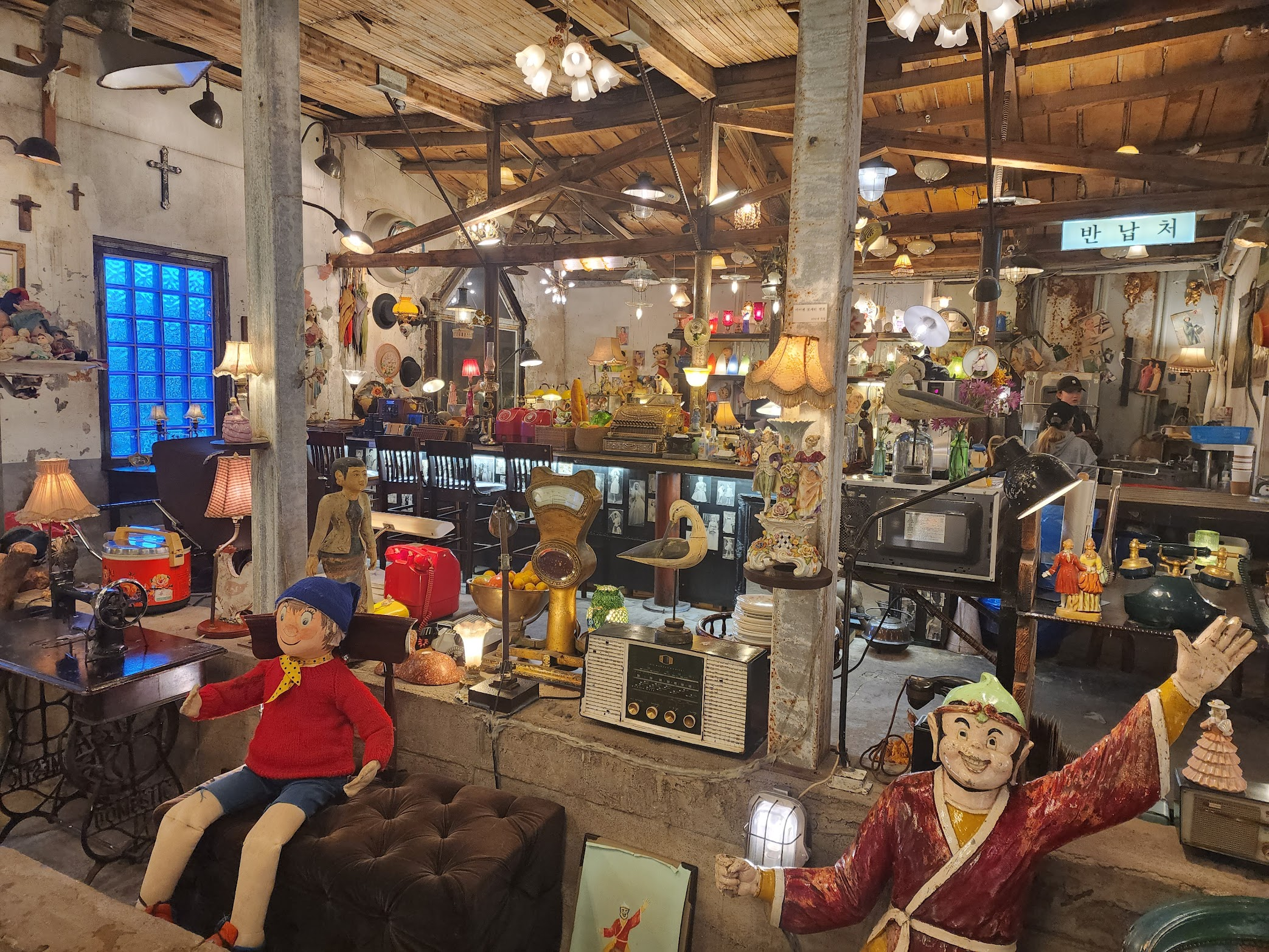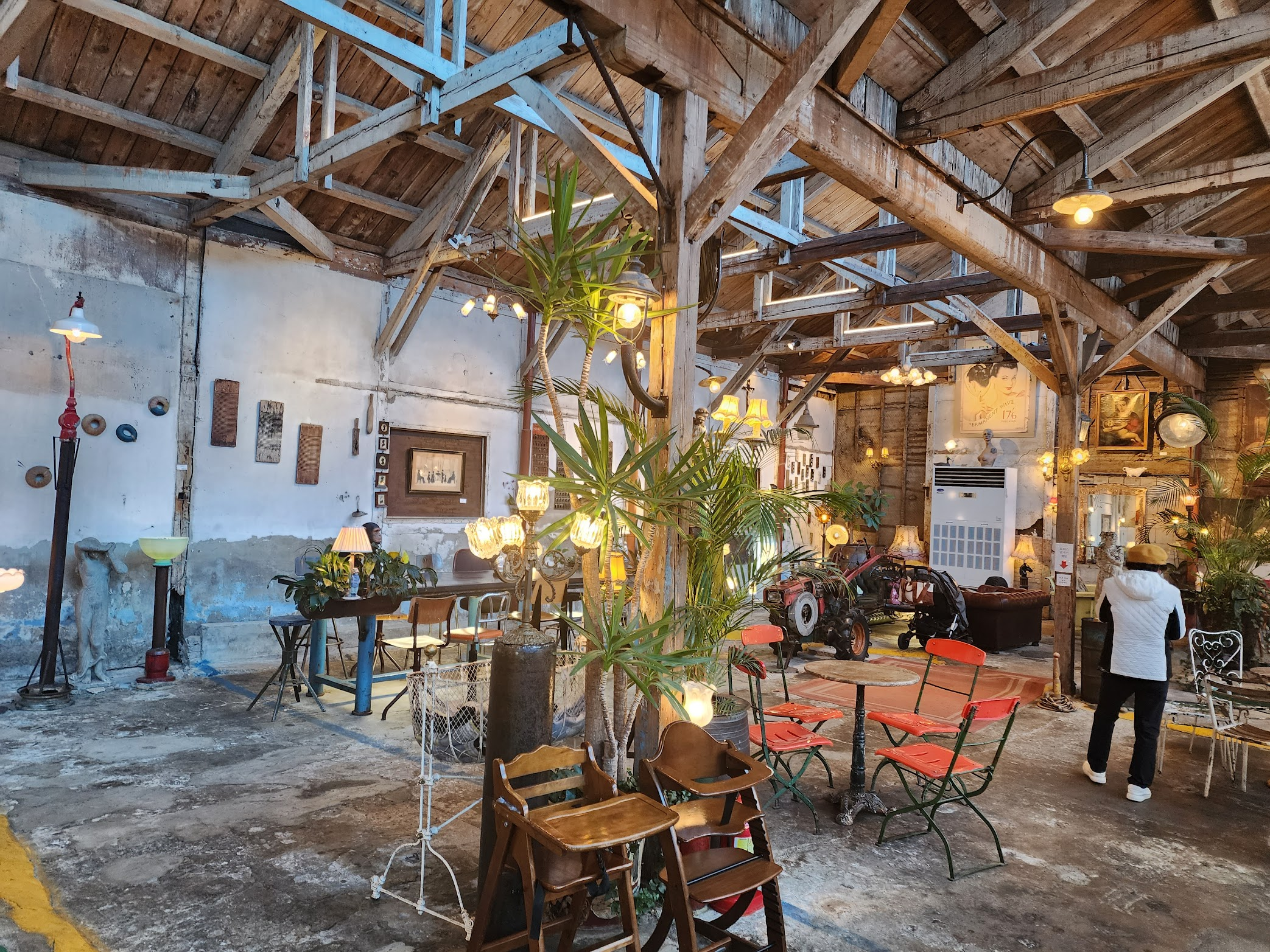 조양방직의 가장 큰 매력은 과거의 흔적을 고스란히 간직하면서도 현대적 감성을 더한 공간 디자인에 있습니다. 과거의 작업대는 커피 테이블로, 오래된 직조기와 공장 설비들은 인테리어 소품으로 활용되었습니다. 또한 공간 곳곳에 배치된 골동품들은 이곳만의 독특한 분위기를 만들어냅니다.