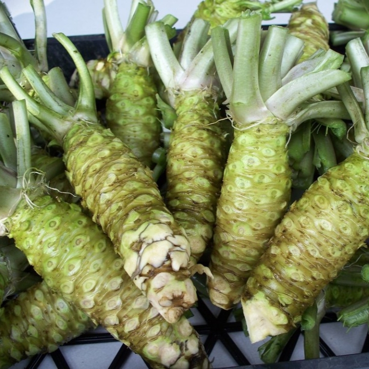 와사비는 맑은 계곡의 차가운 물에서 재배되는 반수생 식물로, 재배 난도가 매우 높습니다. 주로 뿌리줄기(근경)를 강판에 갈아 사용하며, 갈자마자 향이 빠르게 날아가는 특성이 있습니다. 이 때문에 고급 일식집에서는 주문 즉시 갈아 제공하는 경우가 많습니다.