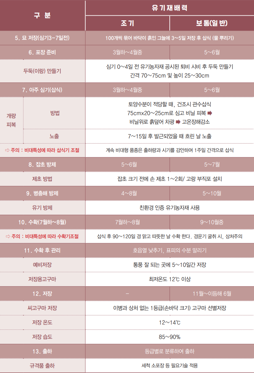 - 씨고구마 묻기: 1월 하순-2월 중순
