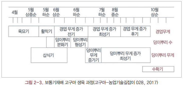 - 덩이뿌리 비대: 7월-9월