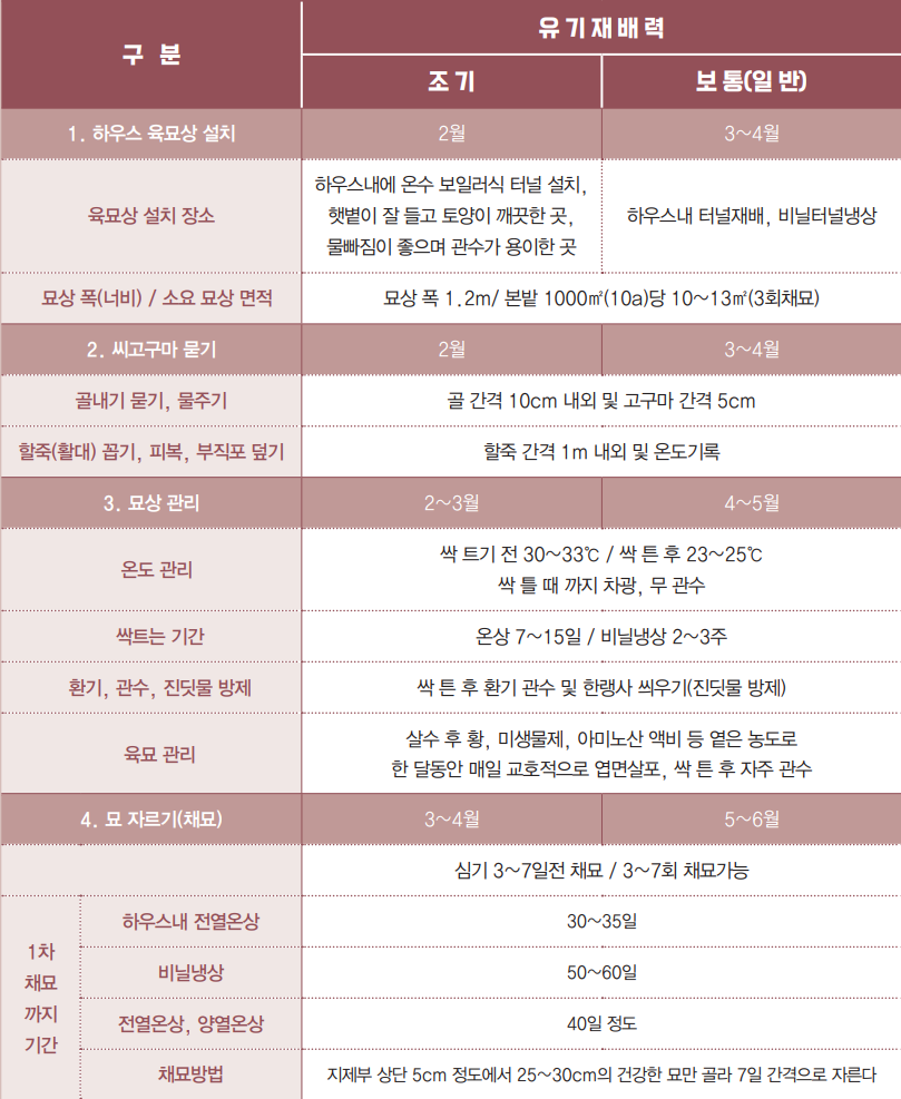 - 육묘 및 채묘: 3월-5월