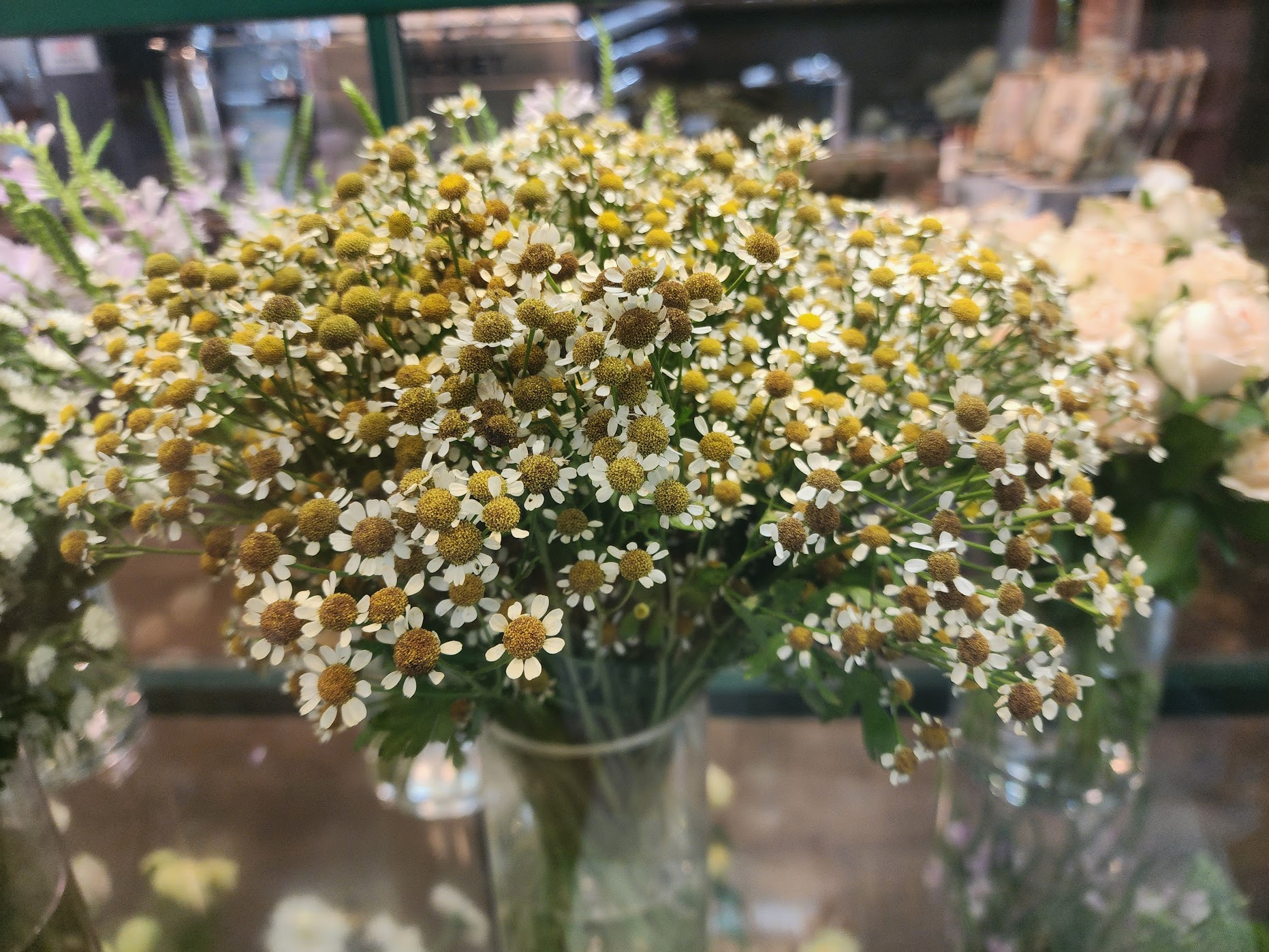 관상용 국화 다양한 색상 (흰색, 노란색 등) 아름다움, 가을 정취