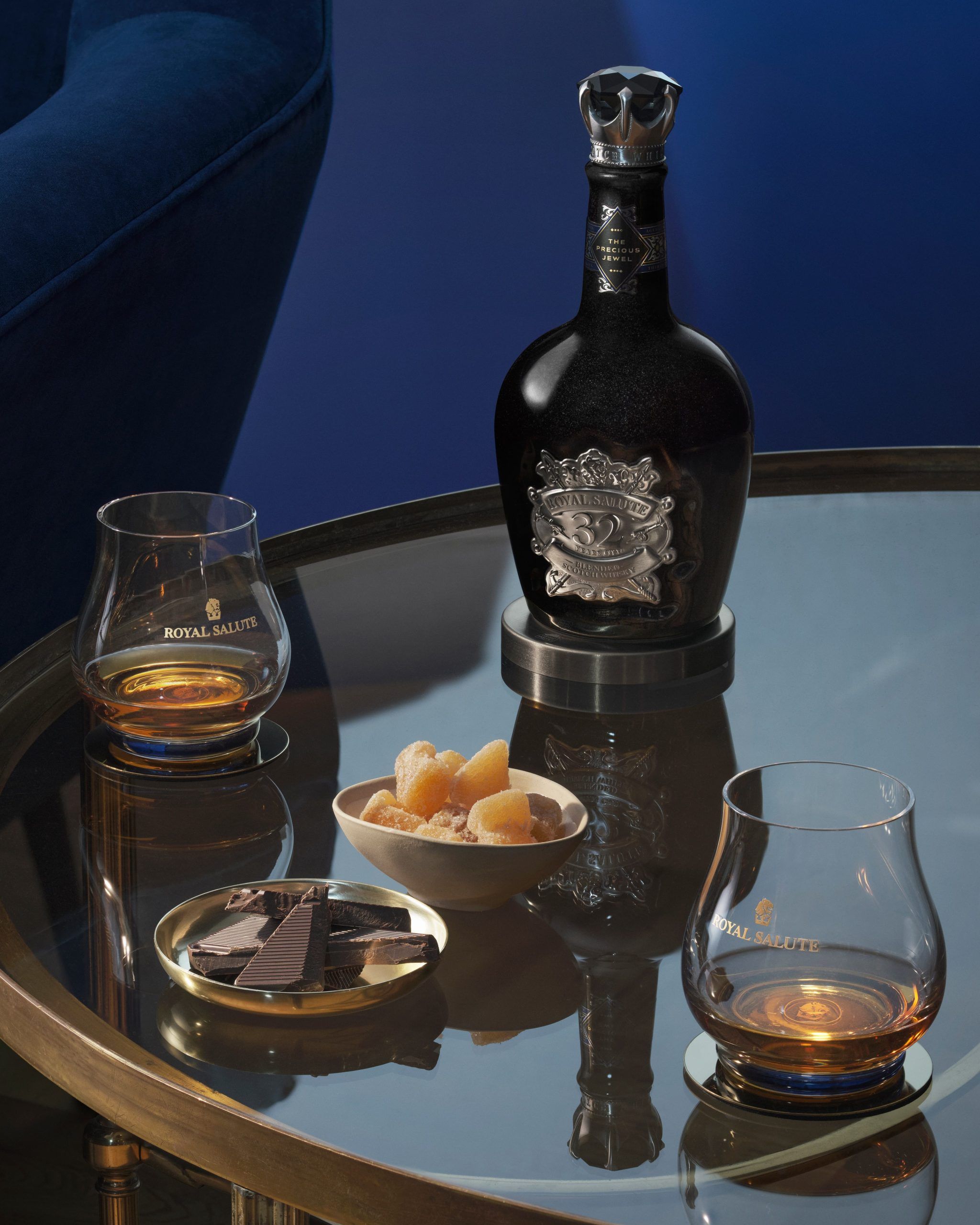 그 후 로얄 살루트는 지속적으로 라인업을 확장해 왔고, 32년, 38년, 62건 살루트 등 하이엔드 숙성 제품들을 추가하면서 단순한 스카치 위스키를 넘어 ‘컬렉터스 아이템’으로 자리잡았습니다. 32년산의 경우 특히 ‘Precious Jewel’이라는 명칭으로 출시되며, 희귀 원액의 블렌딩과 고급 병 디자인을 통해 왕실의 전통과 격조를 상징하는 제품으로 자리매김했습니다.