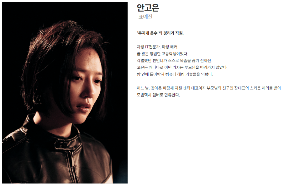 - 안고은: 해킹/정보수집/디지털 잠입, 증거 라인 구축