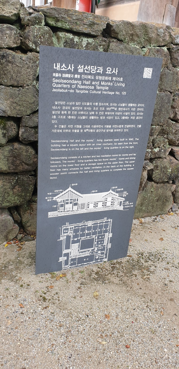 설선당은 17세기 초기에 건축된 건물로, 당시 승려들이 수학하던 장소로 사용되었습니다. 설선당은 간결한 디자인과 아름다운 비례감이 돋보이며, 한국 전통 건축의 미학을 잘 보여주는 예로 꼽힙니다. 이 건물은 내소사에서 중요한 의례가 거행되는 장소이기도 하며, 그 고요하고 평화로운 분위기는 방문객들에게 큰 감동을 줍니다.