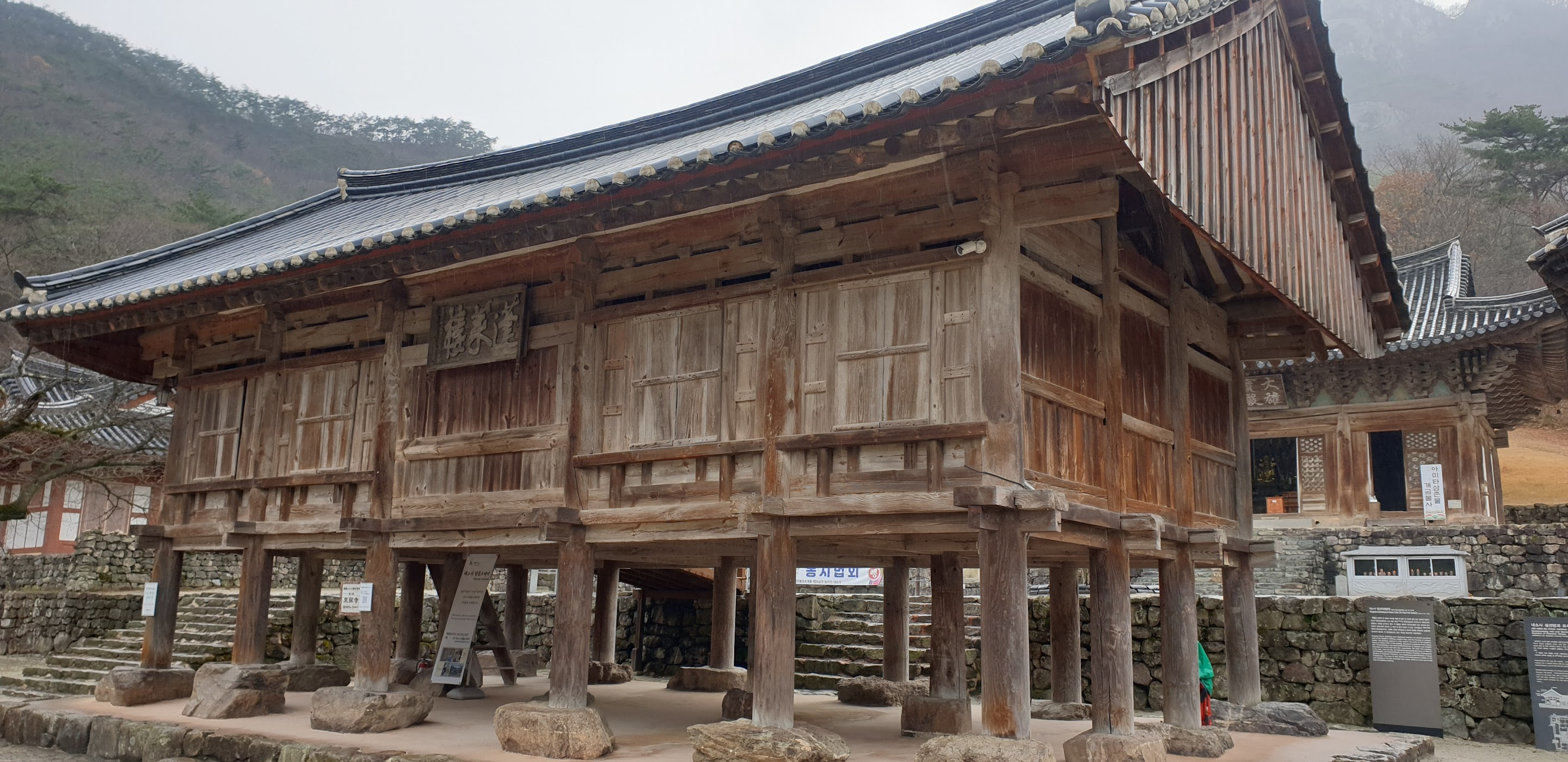 봉래루는 1414년에 건립된 고대 건물로, 현재는 내소사의 산문 역할을 하고 있습니다. 이 건물은 단순한 구조이지만, 그 우아한 비율과 간결한 디자인으로 많은 이들에게 사랑받고 있습니다. 봉래루에서 바라보는 풍경은 바다와 산이 어우러져 더욱 아름다움을 더해줍니다.