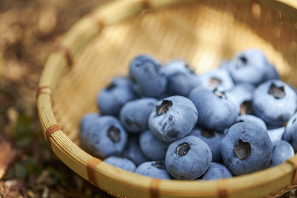 특히 블루베리를 대표하는 안토시아닌(Anthocyanin)은 폴리페놀 계열의 색소로, 노화를 촉진시키는 활성산소를 제거하고 혈관의 염증 반응을 줄이는 데 중요한 역할을 합니다. 블루베리의 색이 짙을수록 안토시아닌 함량이 높습니다.