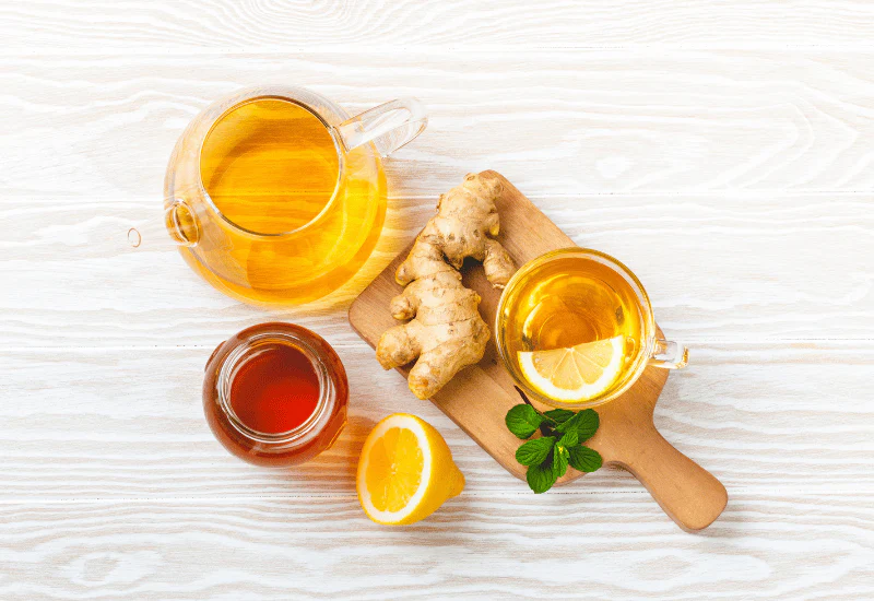 • 생강 + 꿀: 목감기와 기침 완화에 효과적