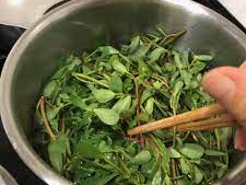 그늘에서 말린 쇠비름을 뜨거운 물에 우리면 개운하고 순한 맛의 차가 됩니다. 소화 후 마시기 좋습니다.