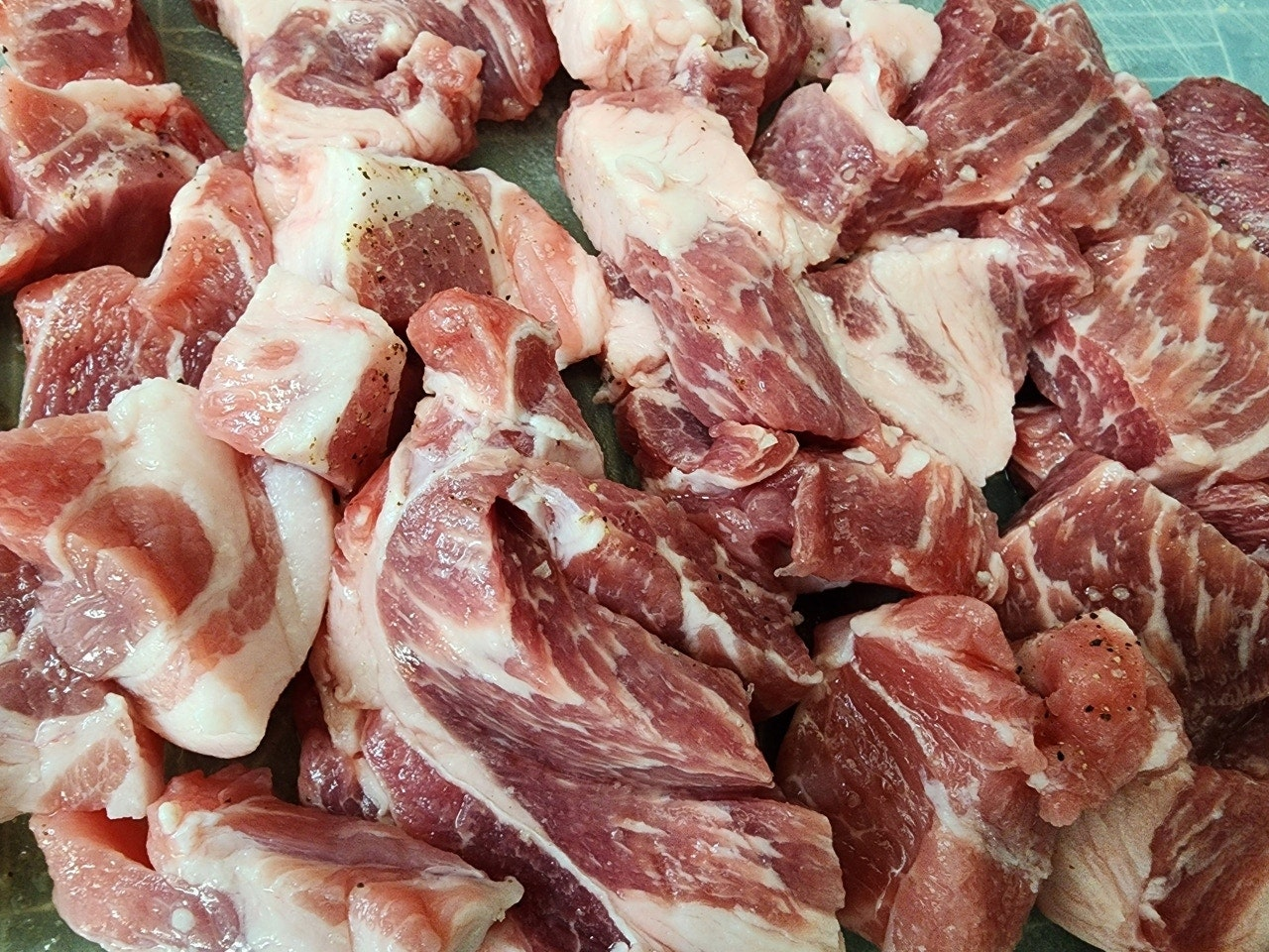 돼지 목살은 돼지고기 부위 중에서도 부드럽고 지방이 적절히 섞여 있어 구워 먹기에 최적입니다. 너무 기름지지 않으면서도 고소한 풍미가 살아 있어 다양한 요리에 활용됩니다.