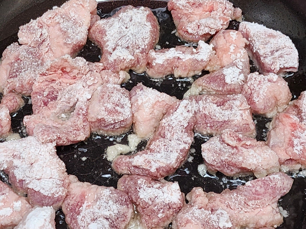 전분가루는 기름에 닿으면 바삭한 식감을 만들어주면서도, 고기의 육즙을 보호해줍니다.