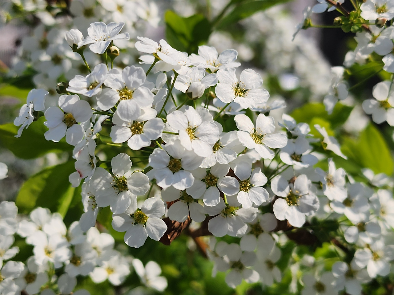 - 조팝나무 꽃: 작은 꽃이 빽빽하게 모여 덩어리 형태