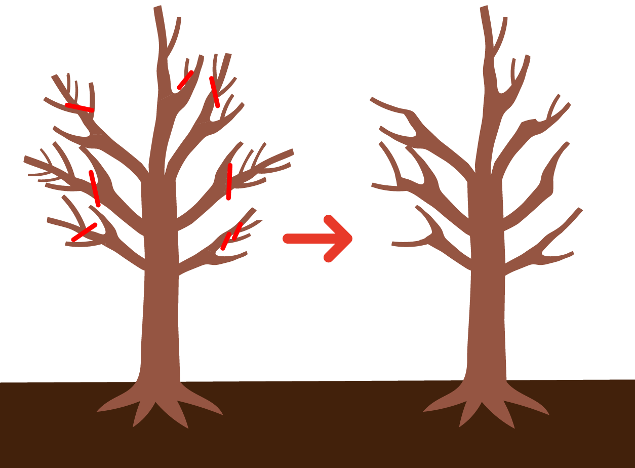 겨울 전정은 나무의 전체 구조를 만드는 핵심 작업이기 때문에 과감하게 정리하는 것이 중요합니다. 다만 과도한 전정은 수세를 약화시킬 수 있으므로 주지와 주요 가지는 유지해야 합니다.