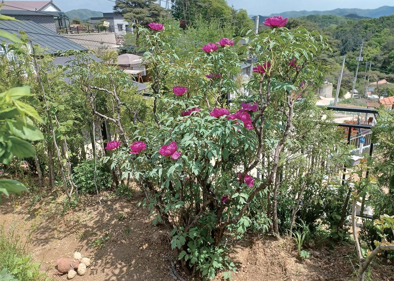 - 모란: 줄기가 목질화되어 겨울에도 남아 있음