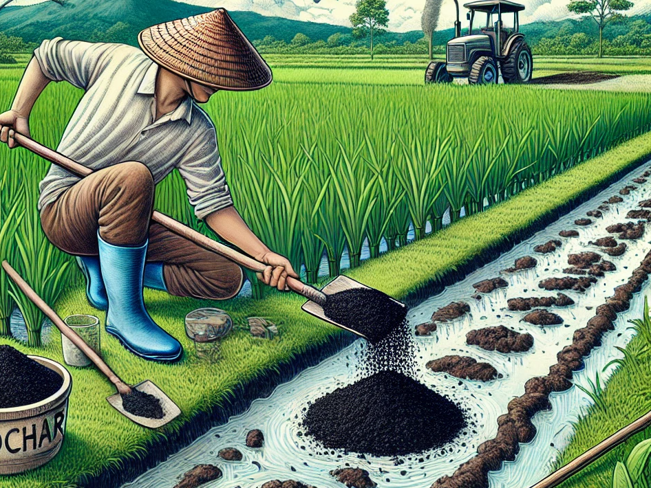 바이오차는 바이오매스를 고온에서 산소 없이 열분해해 만든 숯 형태의 유기물로, 농업에서 다방면으로 활용될 수 있는 친환경 자재입니다. 바이오차를 논이나 밭에 뿌리면 공기 중 탄소를 토양 속에 격리시키고, 토양의 물리적·화학적 특성을 개선해 작물 생육에 긍정적인 영향을 미칩니다.