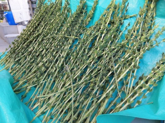 참깨는 아래쪽부터 먼저 익고 위쪽은 조금 늦게 익는 경우가 많습니다. 그래서 포장 전체가 완전히 동일한 상태가 되기를 기다리면 오히려 아래쪽 꼬투리부터 터져 손실이 생길 수 있습니다. 일반적으로는 아랫부분 꼬투리가 충분히 익고, 중간부도 상당히 여문 시점에 수확에 들어가는 것이 좋습니다. 특히 맑고 건조한 날을 골라 작업해야 이후 건조와 탈곡도 수월합니다.