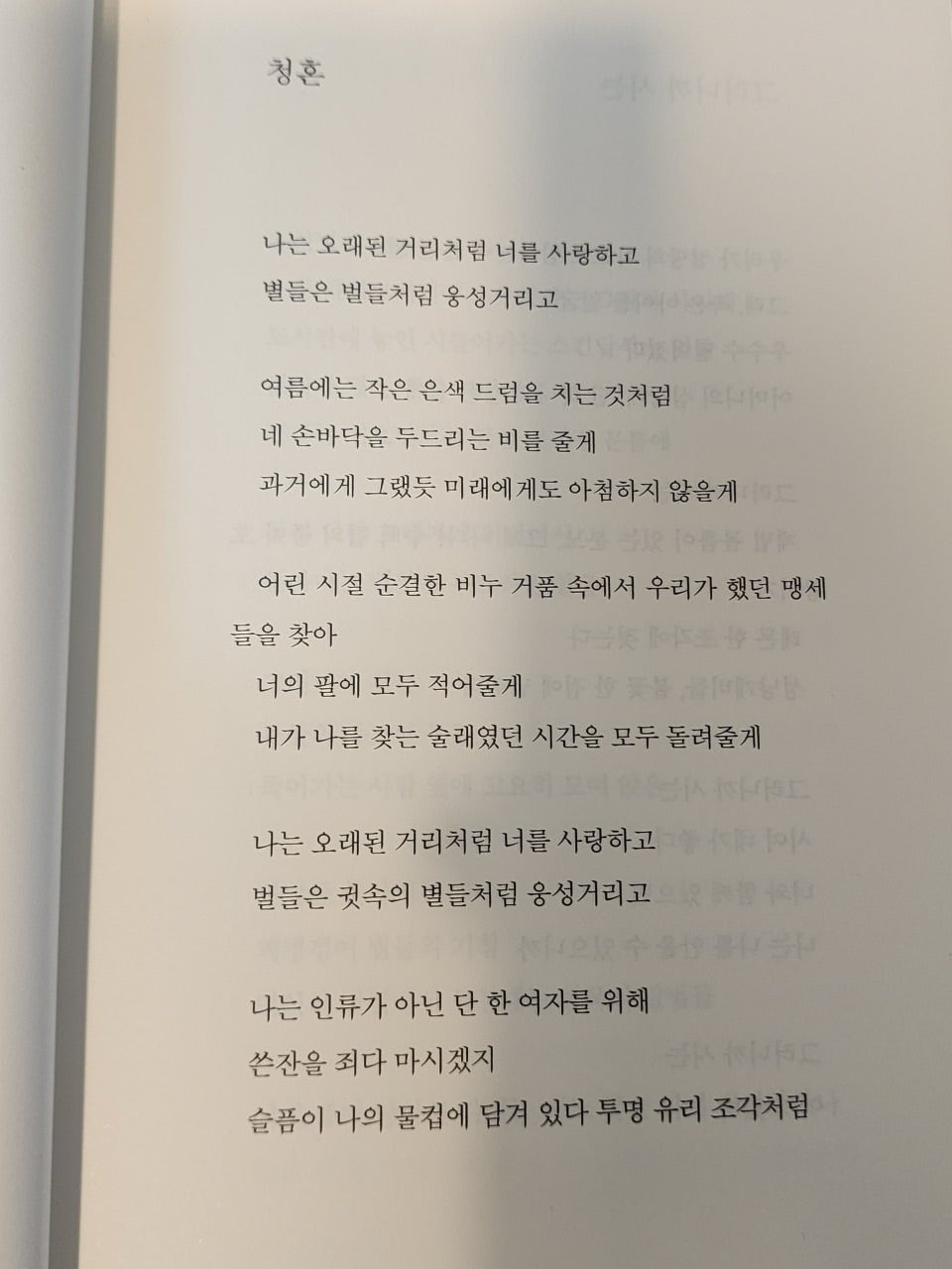 과거에도 그랬듯 미래에게도 아첨하지 않을게어린 시절 순결한 비누 거품 속에서 우리가 했던 맹세