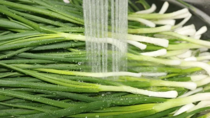 쪽파는 뿌리 부분에 흙이 많이 묻어 있으므로, 흐르는 물에 여러 번 헹궈 씻어야 합니다. 이때 한 방향으로 쪽파를 정리하면서 씻으면 손질이 훨씬 수월합니다. - 밑동 처리