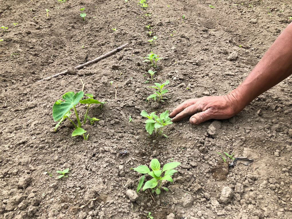 - 일정 간격으로 파종 구멍을 만든다