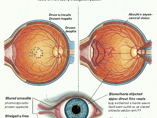 황반변성은 크게 건성과 습성으로 나뉘며, 두 가지 유형에 따라 증상이 다르게 나타납니다.